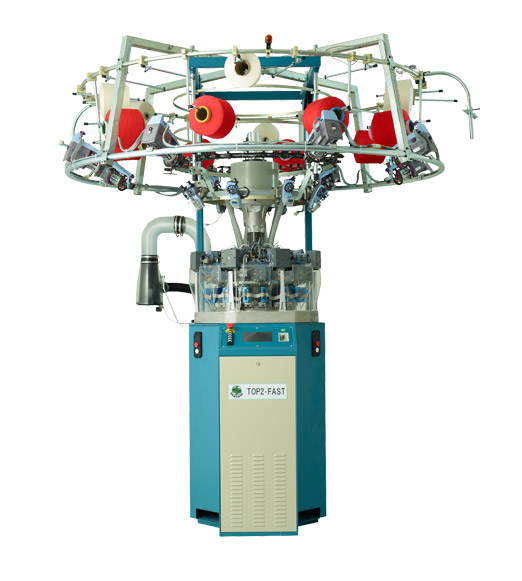 高效8路單面電子提花針織圓機(jī),每路2個選針點(diǎn),具三功位編織技術(shù)(配置16只選針器)。